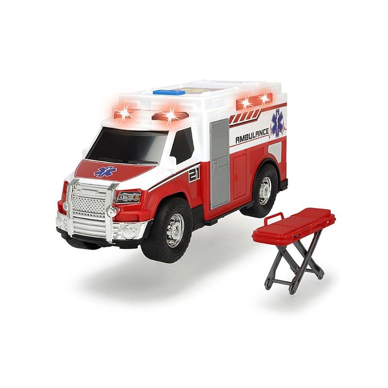 Ambulans karetka marki Dickie to pięknie wykonana zabawka, która spodoba się miłośnikom samochodów. Zabawka została odwzorowana w najdrobniejszych szczegółach, dzięki czemu maluszek z pewnością spędzi z nią mnóstwo czasu. Całość posiada m.in. otwierane tylne drzwi, a po włożeniu baterii wydaje różne dźwięki oraz świeci.