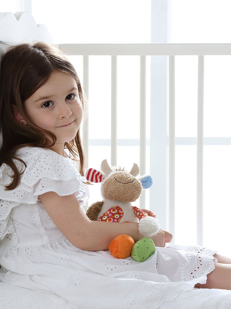 Zabawka daje dziecku poczucie bezpieczeństwa i spokoju. Krówka bardzo chętnie się przytula, ale umie też słuchać, co sprawia, że można do niej przyjść z każdym problemem. Przytulanka uszyta jest z różnych materiałów, dzięki czemu jest w stanie zaoferować maluchowi różne wrażenia dotykowe.