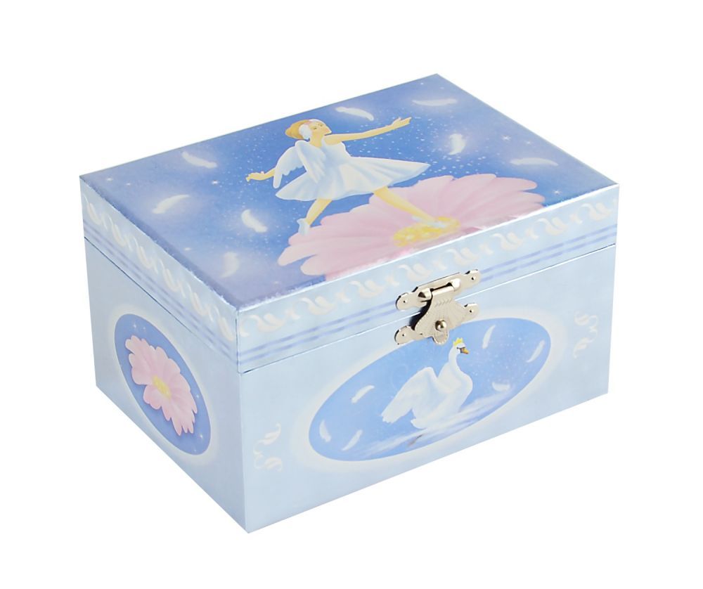 Błękitna pozytywka Jezioro Łabędzi Magni to doskonały prezent dla każdej małej księżniczki! Produkt pełni 3 funkcję – po pierwsze stanowi pudełeczko na drobiazgi, po drugie będzie on śliczną dekoracją pokoju, a po trzecie zabawi każde dziecko – po nakręceniu mechanizmu, balerina, która jest w środku obraca się dookoła, a do uszu dziecka dobiega melodia „Jezioro Łabędzie” Piotra Czajkowskiego.