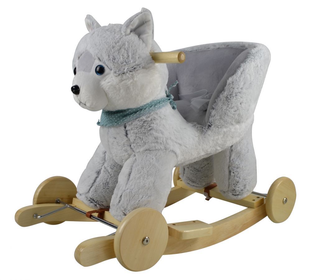 Bujak Husky z fotelikiem i kołami Przytul i kochaj to zabawka, którą pokocha każdy maluszek. Dzieci uwielbiają bujaki, w których mogą się zrelaksować i wyciszyć. Prezentowany bujak, dzięki swojej budowie, doskonale sprawdzi się wśród najmłodszych dzieci. Za sprawą wygodnego fotelika, dziecko jest zabezpieczone przed upadkiem ze wszystkich stron – z tyłu i z boków zabezpiecza je fotel, a z przodu miękka głowa pieska. Dodatkowym zabezpieczeniem jest pas bezpieczeństwa.