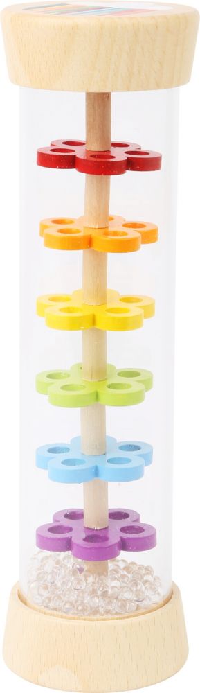 Deszczownica wydaje charakterystyczny dźwięk deszczu poprzez obracanie nią. Produkt ma przezroczystą, plastikową obudowę dzięki czemu dziecko może obserwować jak działa instrument. Podstawy deszczownicy są drewniane. Kuleczki, którym zawdzięczamy dźwięk są przezroczyste – a więc przypominają prawdziwy deszczyk.