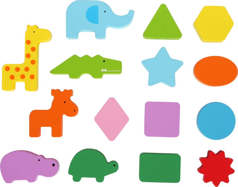 Dotykowe memo w pudełku Safari Sfd to prosta i jednocześnie bardzo efektywna gra sensoryczna. W zestawie znajduje się 15 kart z rysunkami oraz 15 drewnianych klocków w różnych kształtach. Całość spakowano do sporego, kartonowego pudełka, które posiada w pokrywce specjalny otwór. Na początku gry wszystkie drewniane klocki są w pudełku, a karty z rysunkami są dostępne do losowania. Pierwszy gracz losuje kartę z jakimś kształtem, a następnie wkłada rękę do pudełka z klockami, aby wyciągnąć klocek w takim kształcie, jaki widnieje na wylosowanej karcie. Oczywiście gracz nie może podglądać, musi do tego zadania wykorzystać zmysł dotyku! Jeśli uda się znaleźć pasujący klocek, zabiera on go do swojej puli, a jeśli nie, to kolejka przepada. Wygrywa ten, kto zbierze jak najwięcej klocków. Klocki mają kształty podstawowych figur geometrycznych oraz zwierząt.