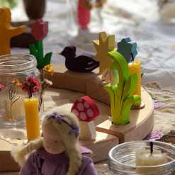 Śliczny, różowy motylek został wykonany z drewna lipowego wykończonego nietoksycznymi bejcami na bazie wody. Twój maluszek może bawić się figurką pojedynczo lub używać jej w połączeniu z innymi klockami i konstrukcjami. Zabawka jest także kompatybilna z wieńcami i świecznikami marki Grimm’s.
