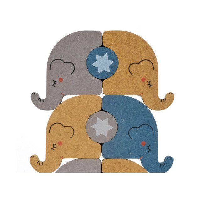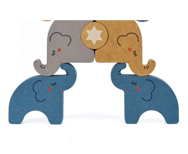 Zestaw zawiera 8 słoników oraz 3 kółka. Gra polega na układaniu jak najwyższej wieży z dostępnych elementów. Twoje dziecko może teraz pomóc słonikom wykonać rozmaite akrobacje! Całość zapakowana jest w ozdobne, cylindryczne pudełko – stanowi zatem doskonały pomysł na prezent!