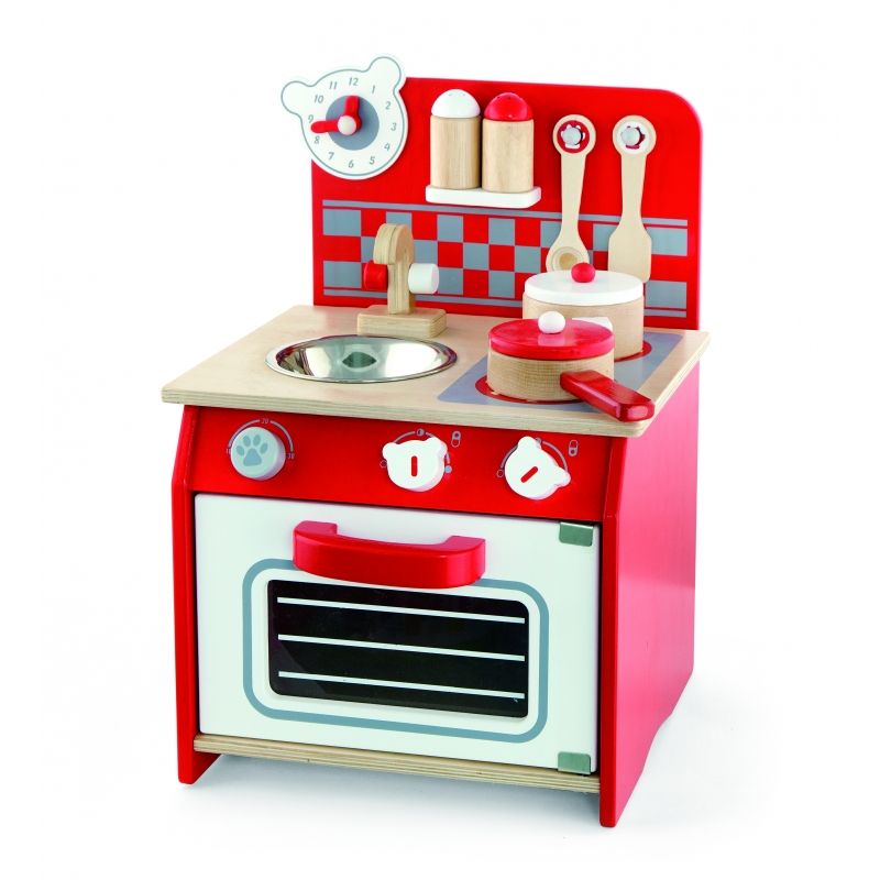 Zabawki firmy Viga Toys cechuje bardzo wysoka jakość wykonania. Są wykonane z najwyższą starannością z trwałych i bezpiecznych materiałów, a całość została pomalowana farbą bezpieczną dla dziecka. W zestawie znajduje się kuchenka z 2 palnikami, piekarnik, zlewozmywak z kranem oraz akcesoria kuchenne. Ponadczasowy charakter zabawy zapewni doskonałą rozrywkę maluchom!
