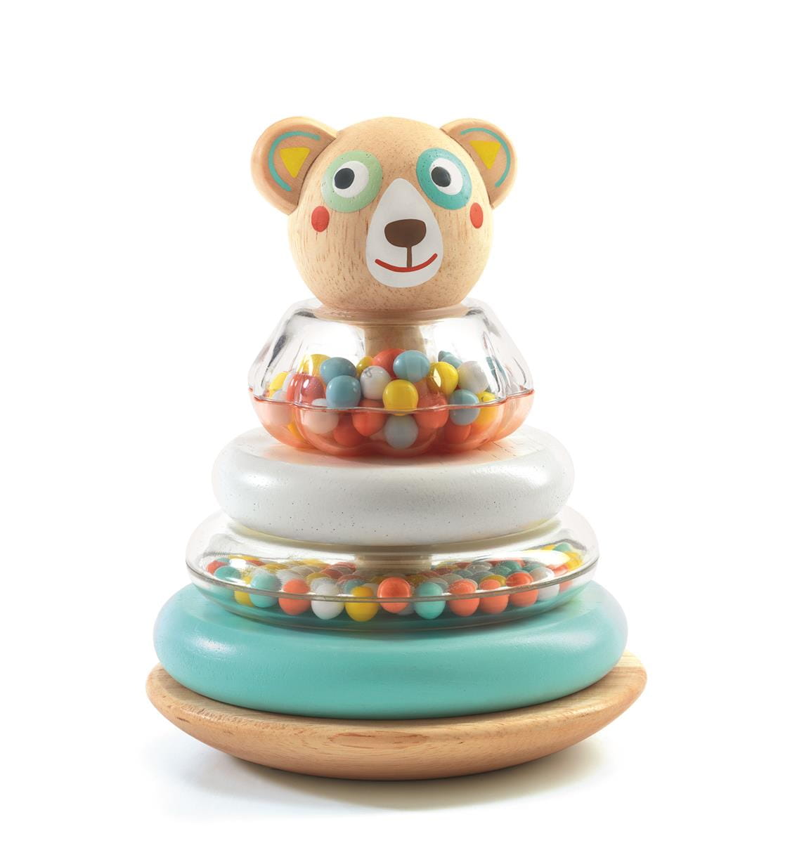 Zabawka zręcznościowa Drewniana piramida z kuleczkami Baby Stacki Djeco dla dzieci powyżej 10 miesiąca życia