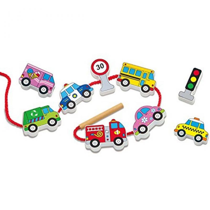 Drewniana Przeplatanka – Samochody to idealna rozrywka dla małych miłośników zabaw zręcznościowych. Zabawka przeznczona jest dla dzieci powyżej 2 roku życia, pomaga rozwijać ich koordynację ruchową oraz logiczne myślenie. Gracz ma za zadanie przeplatać klocki i dowolnie je układać, tworząc własne historyjki związane z ruchem drogowym i podróżami.