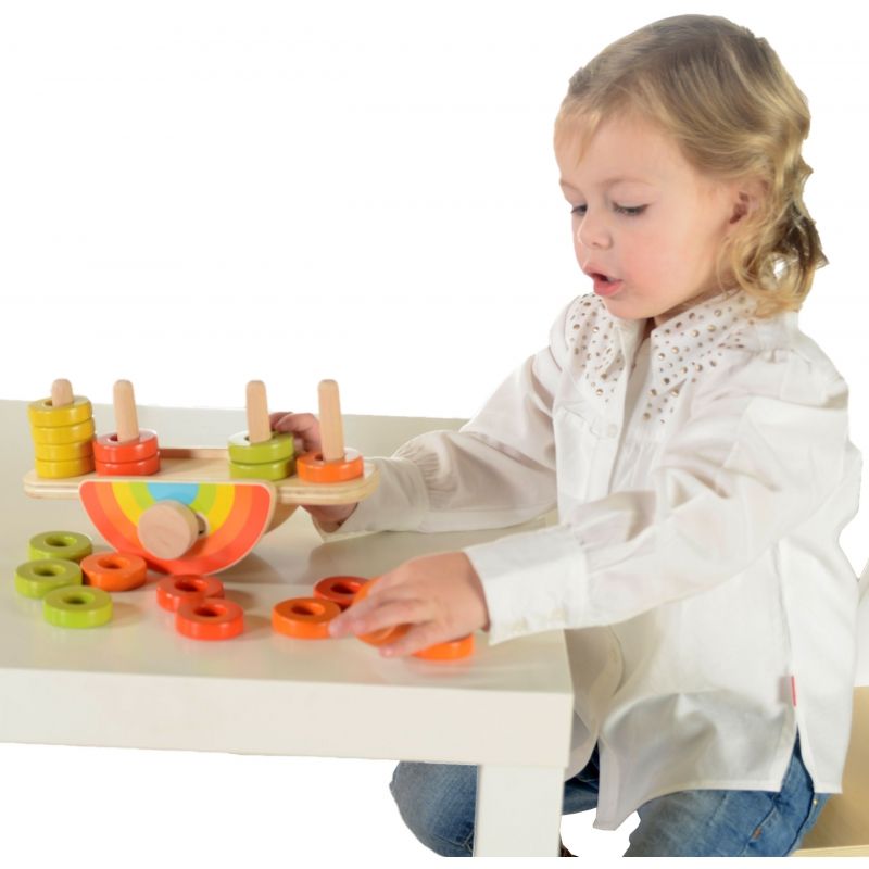 Drewniana tęcz do balansowania zapewni Twojemu dziecku wiele godzin wspaniałej zabawy! Zadaniem malucha będzie układanie elementów w taki sposób, żeby cała konstrukcja zachowała równowagę. Produkt wyróżnia się pięknym, kolorowym designem, który przyciąga uwagę i pobudza wyobraźnię.
