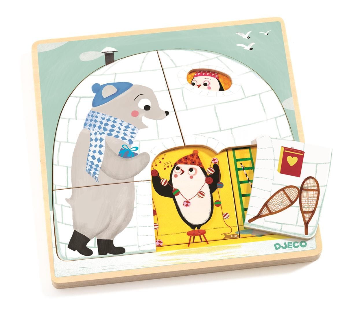 Układanki i łamigłówki Drewniana układanka trójwarstwowa Igloo Djeco dla dzieci od 2 roku życia