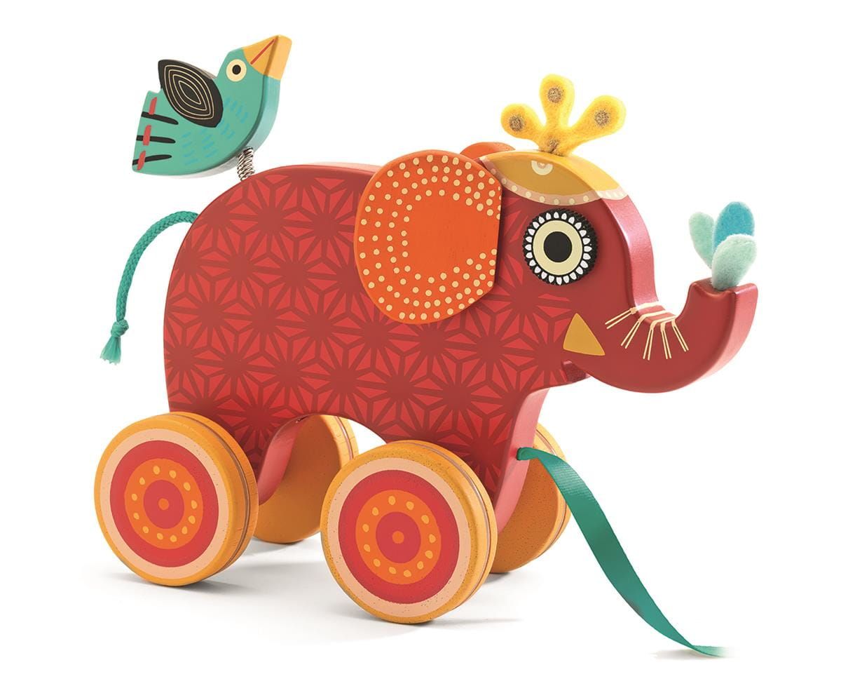 Zabawka wczesnorozwojowa Słonik do ciągnięcia Djeco dla dzieci od 18 miesiąca życia