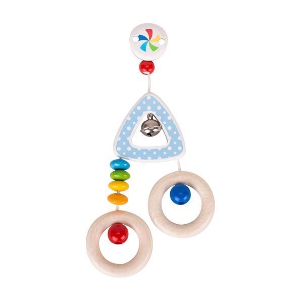 Drewniana zawieszka trójkąt Confetti Heimess to produkt, który pokocha każdy maluszek. Zawieszka służy do zamocowania przy wózku, łóżeczku lub ubranku dziecka. Posiada ona wygodny klips. Zawieszka składa się z trójkącika z dzwonecznikiem, do którego przymocowano sznureczki z kolorowymi koralikami i kółeczkami. Koraliki można obracać i chwytać – czynność ta pomoże dziecku w ćwiczeniu sprawności rączek. Zachętą do zabawy będzie dzwoneczek oraz to, że koraliki będą się delikatnie poruszały podczas spacerków.