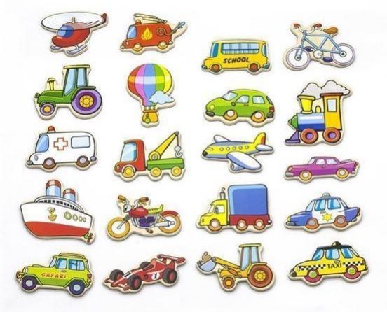 Twoje dziecko uwielbia pojazdy lądowe, latające, pływające, samochody, maszyny i inne pojazdy specjalne? W takim razie zestaw 20 drewnianych magnesów został stworzony specjalnie dla niego! Idealnie nadadzą się do przyczepienia ważnych wiadomości na lodówkę bądź jako dodatkowa zabawka, którą można umieścić na tablicy magnetycznej.