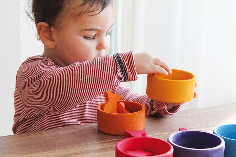 Zabawa w dopasowywanie elementów do miseczek pozwoli ćwiczyć Twojemu maluszkowi motorykę małą odpowiedzialną za sprawność dłoni i palców, doskonalić precyzję ruchów oraz koordynację ręka-oko. Dzięki zabawie Twoje dziecko nauczy się także rozpoznawać kolory.