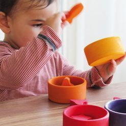 Drewniane Miseczki, gra do sortowania, tęczowe, Grimm’s – nauka kolorów i świetna zabawa