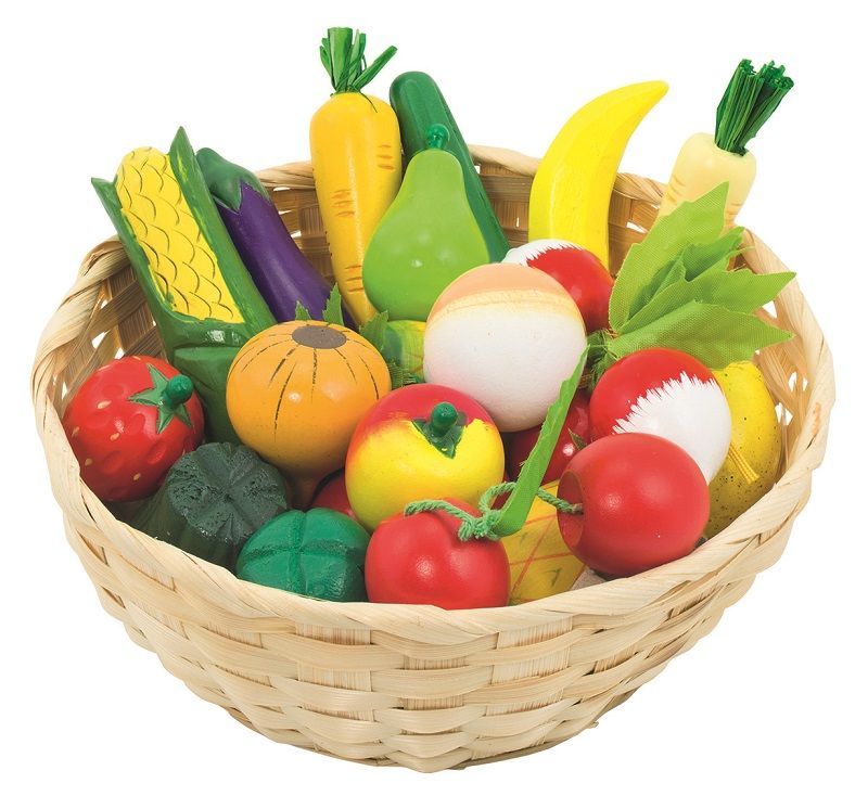 Drewniane owoce i warzywa w koszyku 21 szt. Goki