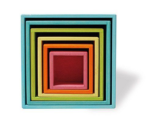 Drewniane pudełka w pastelowych kolorach zostały wykonane z drewnianej sklejki i wykończone nietoksycznymi bejcami na bazie wody. Twój maluszek może za pomocą drewnianej pęsety Grimm’s przenosić drobne przedmioty do pudełek, ćwicząc w ten sposób koordynację ręka-oko oraz motorykę małą, odpowiedzialną za sprawność dłoni i palców. Pudełka do także świetne schowki na drobne rzeczy Twojego maluszka. Z różnych wariantów skrzyneczek Twoje dziecko może także skonstruować piękny domek dla drewnianych figurek lub lalek. Łączenie pudełek z innymi konstrukcjami rozwinie kreatywność i wyobraźnię Twojego dziecka.
