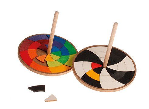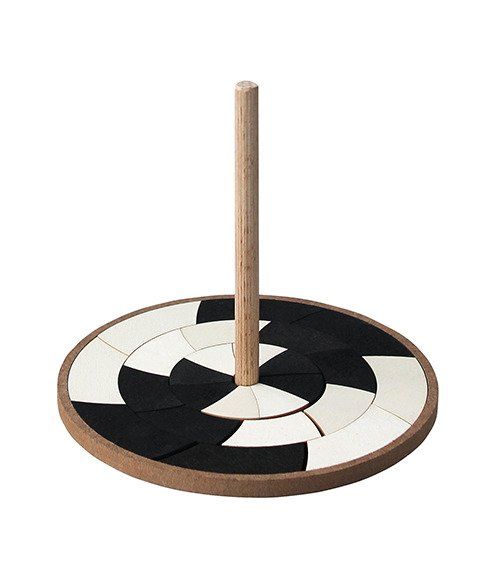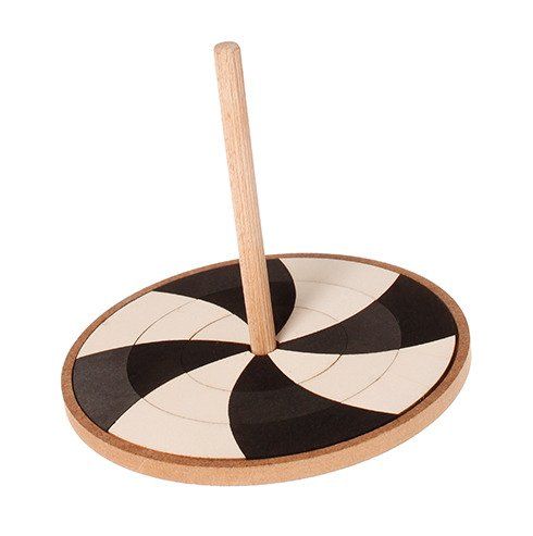 Drewniany bączek wypełniony biało-czarnymi płytkami z pewnością przypadnie do gustu każdemu maluszkowi! Wystarczy zakręcić zabawką, aby elementy w środku zaczęły pięknie wirować. Zabawka została wykonana z drewna brzozowego i topolowego, wykończonego nietoksycznymi barwnikami na bazie wody. Biało-czarne klocki można układać w dowolnych konfiguracjach.