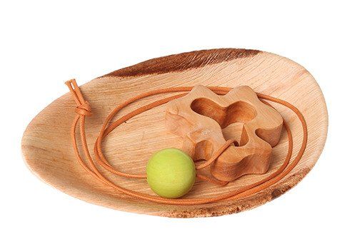 Gryzak na naszyjniku to świetny drobiazg zarówno dla mamy, jak i dziecka. Twój maluszek może podczas trzymania na rękach bawić się gryzaczkiem, ćwicząc tym samym sprawność dłoni i palców. Gryzak został wykonany z niezwykłą starannością. Jest aksamitny w dotyku. Koralik zawieszony na naszyjniku został wykonany z drewna klonowego, gryzak natomiast z drewna lipowego. Całość zapakowana jest w powłokę z liści palmowych.