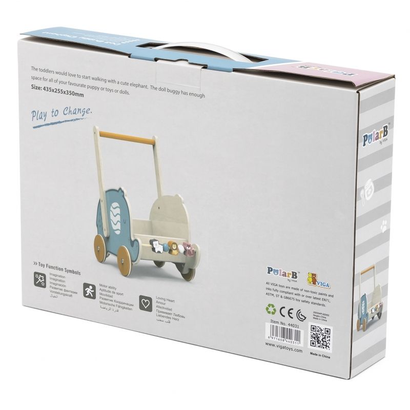 Seria drewnianych zabawek PolarB marki Viga Toys doskonale wspomaga rozwój dużej i małej motoryki. Chodziki należą do najczęściej wybieranych zabawek dla dzieci, które rozpoczynają stawianie pierwszych kroków. Spacer z chodzikiem to prawdziwa przyjemność, ułatwia utrzymanie równowagi podczas doskonalenia chodzenia. Kółka wózeczka posiadają gumowe osłonki co na ma celu, tłumienie odgłosów oraz właściwości antypoślizgowe. Całość została wykonana z najwyższej jakości drewna bukowego. Zabawka doskonale łączy funkcję chodzika i wózeczka.