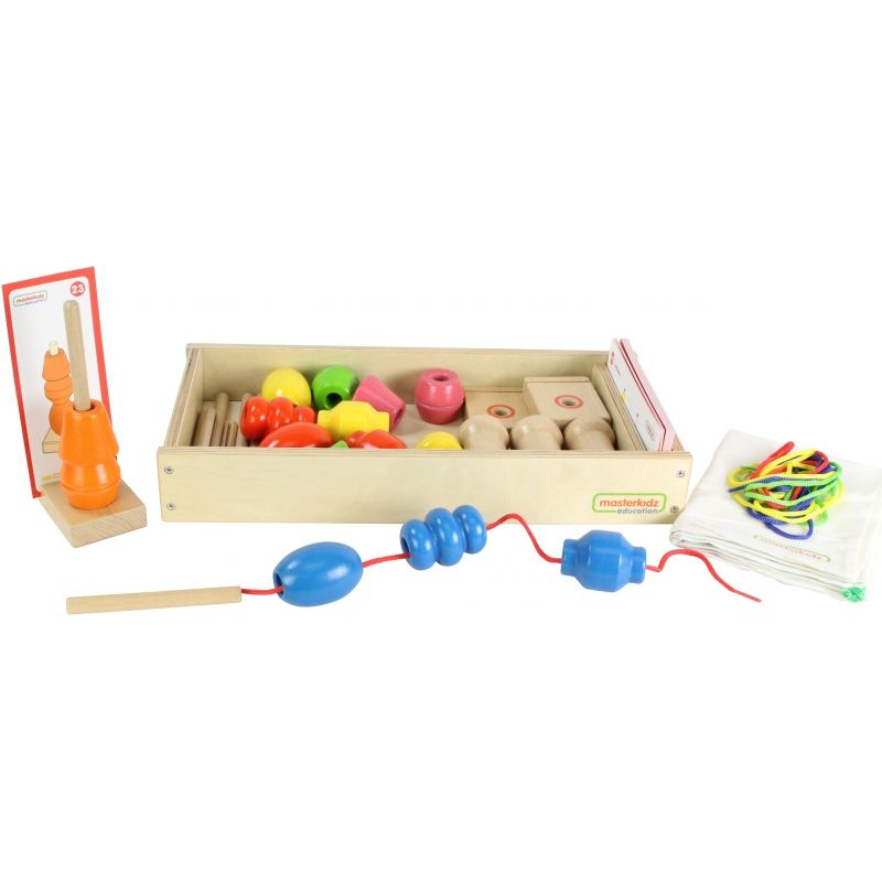 Zabawa sznurowanką dostarcza mnóstwa frajdy, a jednocześnie rozwija sprawność manualną i zmysł estetyczny. Komplet daje wiele możliwości zabawy – malec może nawlekać koraliki na sznurki i stojaczki lub wykorzystać elementy np. do nauki liczenia i sortowania. Warto dodać, że zestaw można dowolnie łączyć z innymi sznurowankami firmy Masterkidz, by uczynić zabawę jeszcze ciekawszą!