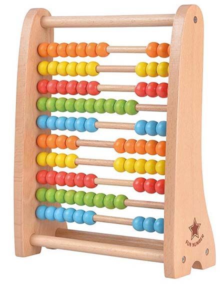 Rama, paciorki oraz poprzeczki wykonane są z drewna. Umieszczono na nich w sumie 100 koralików (po 10 w rzędzie). Ułatwieniem jest to, że koraliki występują w pięciu różnych kolorach. Liczydło świetnie sprawdzi się także wśród młodszych dzieci, które nie uczą się jeszcze liczyć – chwytanie i przesuwanie kolorowych koralików będzie świetnym ćwiczeniem sprawności dla małych rączek.