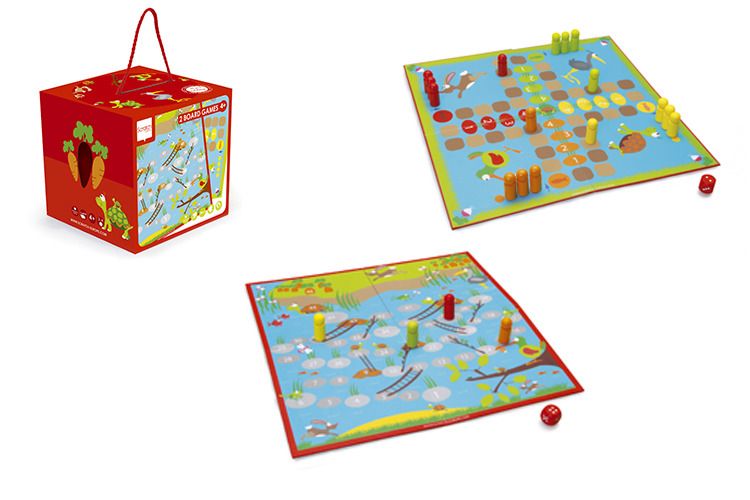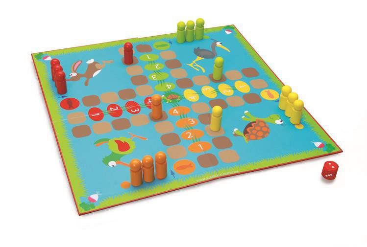 Dwustronna gra planszowa Ogród wciągnie dziecko bez reszty! Zestaw zawiera kolorowe pionki, kostkę do gry oraz planszę, którą brzdąc może złożyć samodzielnie z czterech puzzli. Malcowi z pewnością spodobają się żywe kolory planszy oraz znajdujące się na niej ilustracje przedstawiające urocze zwierzątka.