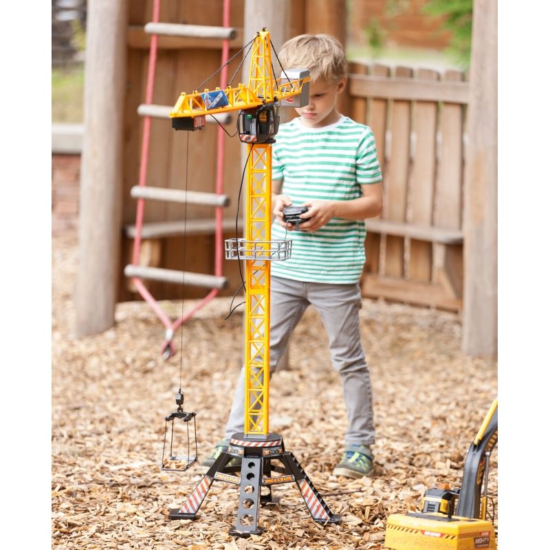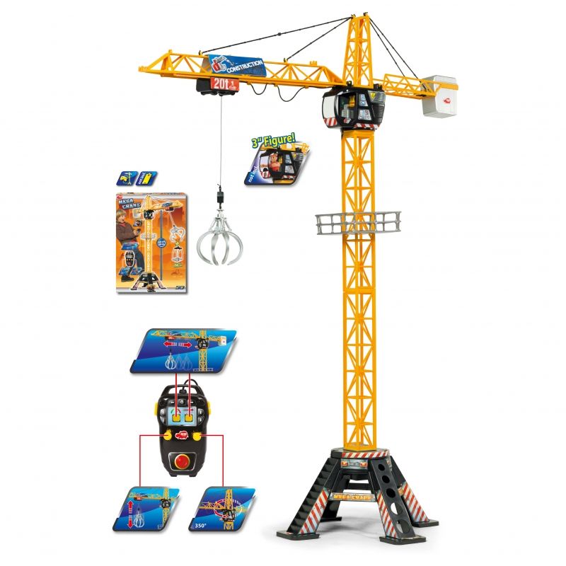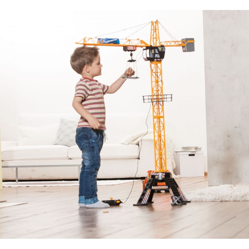 Prezent w postaci zdalnie sterowanego dźwigu sprawi, że na twarzy malca pojawi się szeroki uśmiech. Zestaw zawiera efektowny dźwig wyposażony w ruchome ramię, kabinę operatora oraz platformę, a także łatwy w obsłudze pilot, za pomocą którego brzdąc może sterować żurawiem. Jeden drążek wprawia w ruch ramię dźwigu, drugi służy do podnoszenia i opuszczania liny z hakiem.