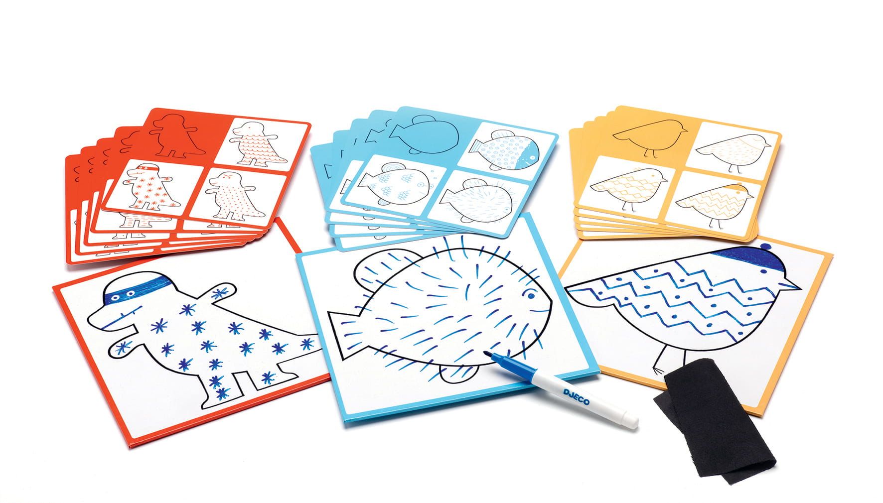 Seria gier Eduludo jest przeznaczona dla malców nieustannie poszukujących nowych wyzwań. Zestawy z kolekcji przynoszą dużo radości, a jednocześnie stymulują umysł dziecka. Dzięki nim najmłodsi mogą m.in. poznać figury geometryczne, poćwiczyć liczenie i sprawdzić się w rysowaniu. Francuska firma Djeco, producent gier Eduludo, od lat tworzy atrakcyjne zabawki edukacyjne, które pozwalają połączyć naukę z dobrą zabawą.
