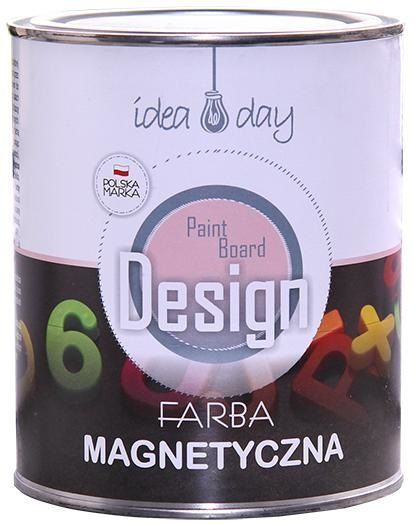 Farba magnetyczna podkładowa 0,75 litra IdeaDay to produkt, który pozwoli stworzyć funkcjonalne i piękne wnętrze. Doskonale sprawdzi się do użycia w pokoju dziecięcym. Na ścianie pokrytej tą farbą, dziecko będzie mogło przypinać za pomocą magnesów swoje rysunki i inne dzieła. Ściana pokryta tą farbą będzie pełniła funkcję tablicy magnetycznej. Farba jest ścianą podkładową koloru czarnego – oznacza to, że dla uzyskania najlepszego efektu, należy położyć na niej warstwę farby w wybranym kolorze lub farby tablicowej (wtedy uzyskamy ścianę, która równocześnie pełni funkcję tablicy magnetycznej oraz tablicy, po której można pisać kredą). Ścianę można także pokryć cienką tapetą.