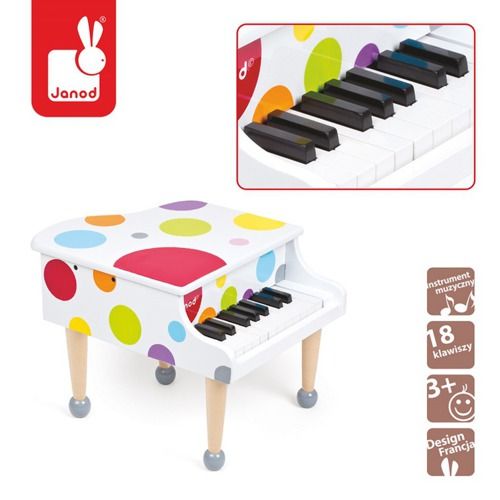 Za zabawkę odpowiada francuska marka JANOD, która działa nieprzerwanie od 1970 roku. Dzięki wieloletniej obecności na rynku ten producent jest w stanie tworzyć unikalne zabawki, które zachęcają dzieci do samorozwoju. Fortepian Confetti to również doskonały pomysł na kreatywny prezent dla malucha. Kto wie, może to właśnie muzyka okaże się jego pasją?