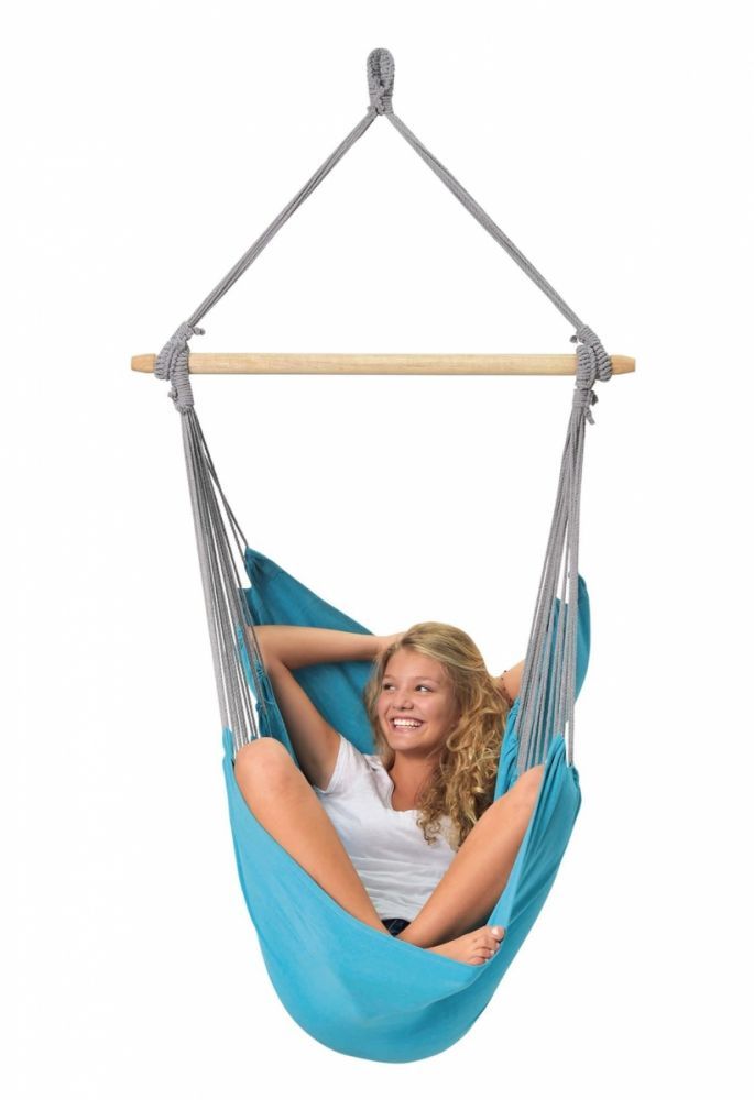 Fotel wiszący Panama Aqua Amazonas doskonale sprawdzi się zarówno na zewnątrz, jak i wewnątrz. W fotelu mogą się relaksować dzieci oraz dorośli – maksymalne obciążanie to aż 120 kg! Fotel można zamontować na specjalnym stojaku, na drzewie lub na suficie za pomocą haka. Produkt jest odporny na działanie czynników atmosferycznych, jest on także wodoodporny.