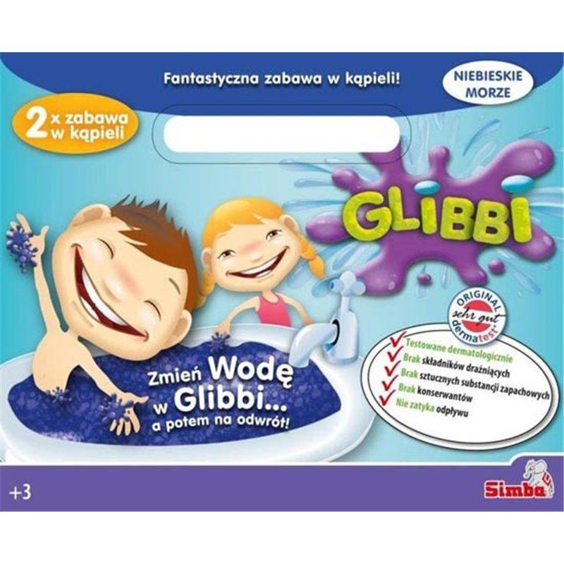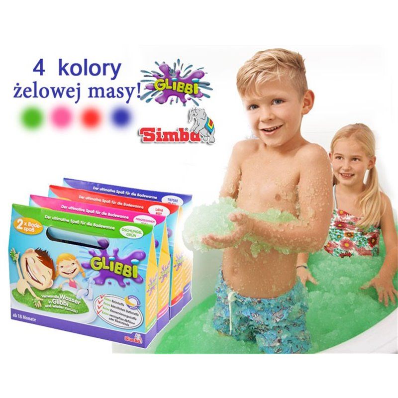 Galaretka żelkowa Glibbi to gwarancja świetnej zabawy podczas kąpieli. Jedna torebka substancji wystarcza na 30 litrów cieczy. Jedyne, co musisz zrobić, to wsypać proszek do wanny, wymieszać go z letnią wodą, a następnie poczekać 5–10 minut. Dołączony do zestawu biały proszek pozwala rozcieńczyć masę po skończonej zabawie. Produkt jest testowany dermatologicznie i nie zatyka odpływu.