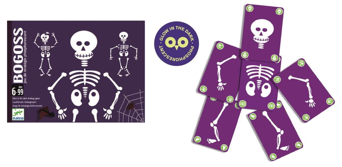 Karciana gra towarzyska Bogoss będzie prawdziwym hitem biwaków i imprez piżamowych. Zestaw zawiera 44 fluorescencyjne karty przedstawiające różne części szkieletów. Celem każdego z graczy jest bycie pierwszym, który skompletuje dwa zdrowe szkielety lub jeden połamany. Przed rozpoczęciem rozgrywki karty wystarczy na kilkanaście minut wystawić na działanie światła.