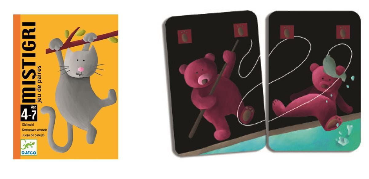 Karciana gra Mistigri jest uwielbiana przez dzieci! Zadanie uczestników zabawy polega na odnalezieniu par dla wszystkich posiadanych kart. Gracze po kolei wybierają jedną kartę z zakrytej talii przeciwnika, a rozgrywka trwa dopóty, dopóki nie zostaną skompletowane wszystkie pary. Przegrywa osoba, która w momencie zakończenia gry ma w ręce pozbawioną pary kartę Mistigri.