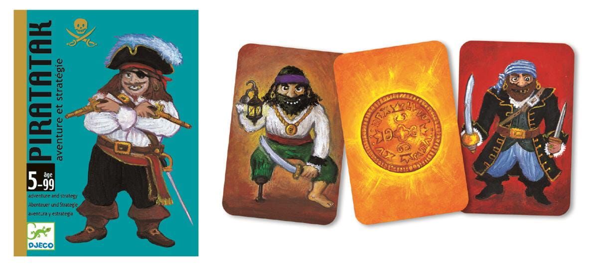 Gry karciane mają swoich oddanych fanów na całym świecie, ponieważ sprawdzają się w każdej sytuacji. Piratatak został zaprojektowany z myślą o dzieciach powyżej piątego roku życia. Podczas gry szkrab uczy się planować swoje ruchy i logicznie myśleć, a ponadto rozwija umiejętność utrzymywania koncentracji. Francuska firma Djeco, producent gry, niezmiennie stawia na atrakcyjną tematykę oraz wysoką jakość wykonania.