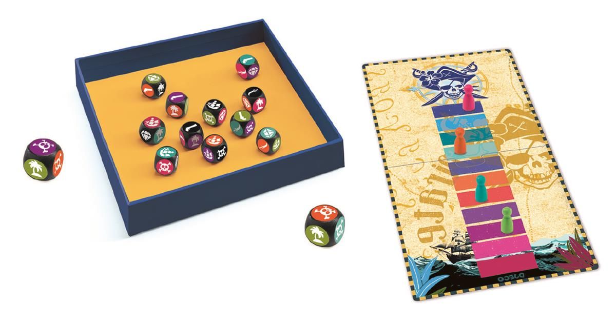 Pomysłowa gra marki Djeco rozbudzi wyobraźnię Twojego małego pirata. W opakowaniu dziecko znajdzie podkładkę pod kości, 12 kości, pionki oraz planszę do gry w formie mapy skarbów. W grze mogą wziąć udział maksymalnie 4 osoby. Wygrywa uczestnik, który jako pierwszy dotrze do skarbu. Atrakcyjna tematyka i pięknie wykonane akcesoria zachęcą smyka do wzięcia udziału w zabawie.