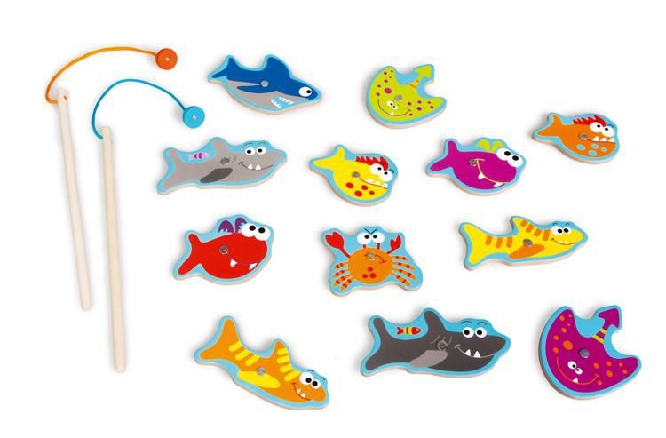 Gra Łowimy rybki to świetny pomysł na przyjemne spędzenie popołudnia. Zabawa rozwija koordynację ruchowo-wzrokową, uczy cierpliwości i pomaga zapoznać dziecko z zasadami zdrowej rywalizacji. Wszystkie rybki zostały ponumerowane na odwrocie, więc nieco starsi wędkarze mogą także ćwiczyć za ich pomocą liczenie.