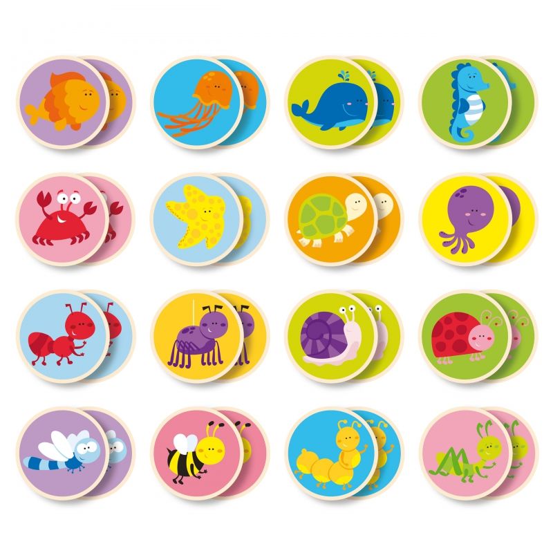 Gra memory to świetna propozycja na rodzinny wieczór gier. Przygotowany przez firmę Viga zestaw Mali przyjaciele składa się z 32 płytek, na których znajdują się wizerunki różnych zwierzątek. Zadanie uczestników zabawy polega na zapamiętaniu położenia poszczególnych płytek i odnalezieniu wśród nich par (parę tworzą dwie identyczne ilustracje). Wygrywa ten, komu uda się odkryć najwięcej par.