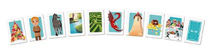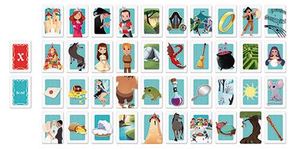 Każdemu z graczy rozdaj po 3, 5 lub 7 kart z ilustracjami – tym mniej, im więcej jest graczy – oraz po jednej karcie „joker” i „koniec opowieści”.