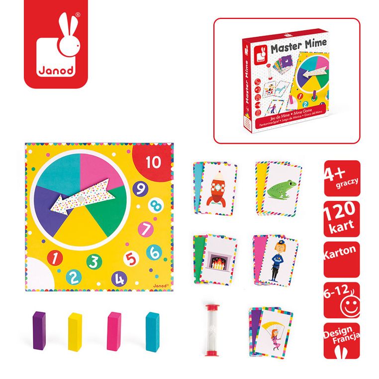 Gra rodzinna Mimiczne kalambury to gwarancja doskonałej zabawy dla całej rodziny! Wylosuj jedną z pięciu kategorii, a następnie spróbuj za pomocą gestów pokazać swojej drużynie, co znajduje się na karcie. Jeśli w ciągu 30 sekund odgadną, co to jest – zdobywacie punkt!