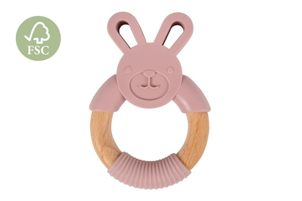 Produkt wykonano z silikonu. Gryzak jest wytrzymały i łatwy w czyszczeniu – można go czyścić za pomocą wody i mydełka. Materiały użyte do produkcji gryzaka są w pełni bezpieczne: nie zawierają BPA, ftalanów i PVC. Uchwyt wykonano z naturalnego drewna. Zgodnie z artykułem 38 punkt 5 ustawy Prawo konsumenckie ten produkt ze względów higienicznych nie podlega zwrotowi po otwarciu opakowania.