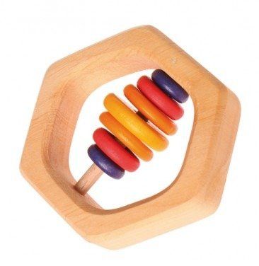 Gryzak w kształcie sześciokąta został wykonany z drewna olchowego, pokrytego naturalnym olejem roślinnym. Twój maluszek może chwytać, obracać, przekładać zabawkę w rączkach, ćwicząc tym samym motorykę małą i koordynację ręka-oko. Drewno zastosowane do produkcji gryzaka ma powierzchnię, która wiąże wilgoć i nie pozwala na rozwój bakterii. Twoja pociecha może zatem bawić się gryzakiem bez ograniczeń. Zabawka jest przyjemna w dotyku. Posiada także naturalny zapach drewna. Przekładanie kolorowych krążków w środku gryzaka to świetny sposób na naukę liczenia i rozpoznawania kolorów.