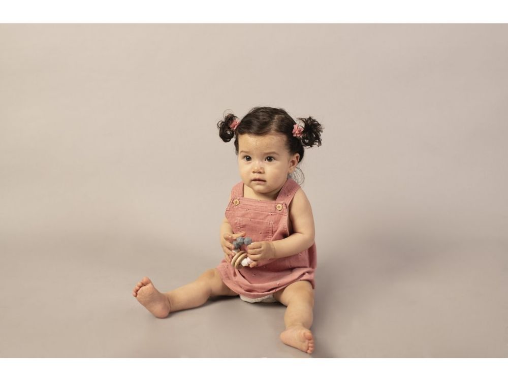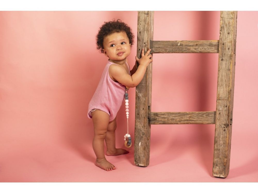 Produkt będzie idealnym prezentem na pierwszą wizytę. Gryzak składa się z koralików w kolorze białym, szarym i różowym, co daje modne połączenie.