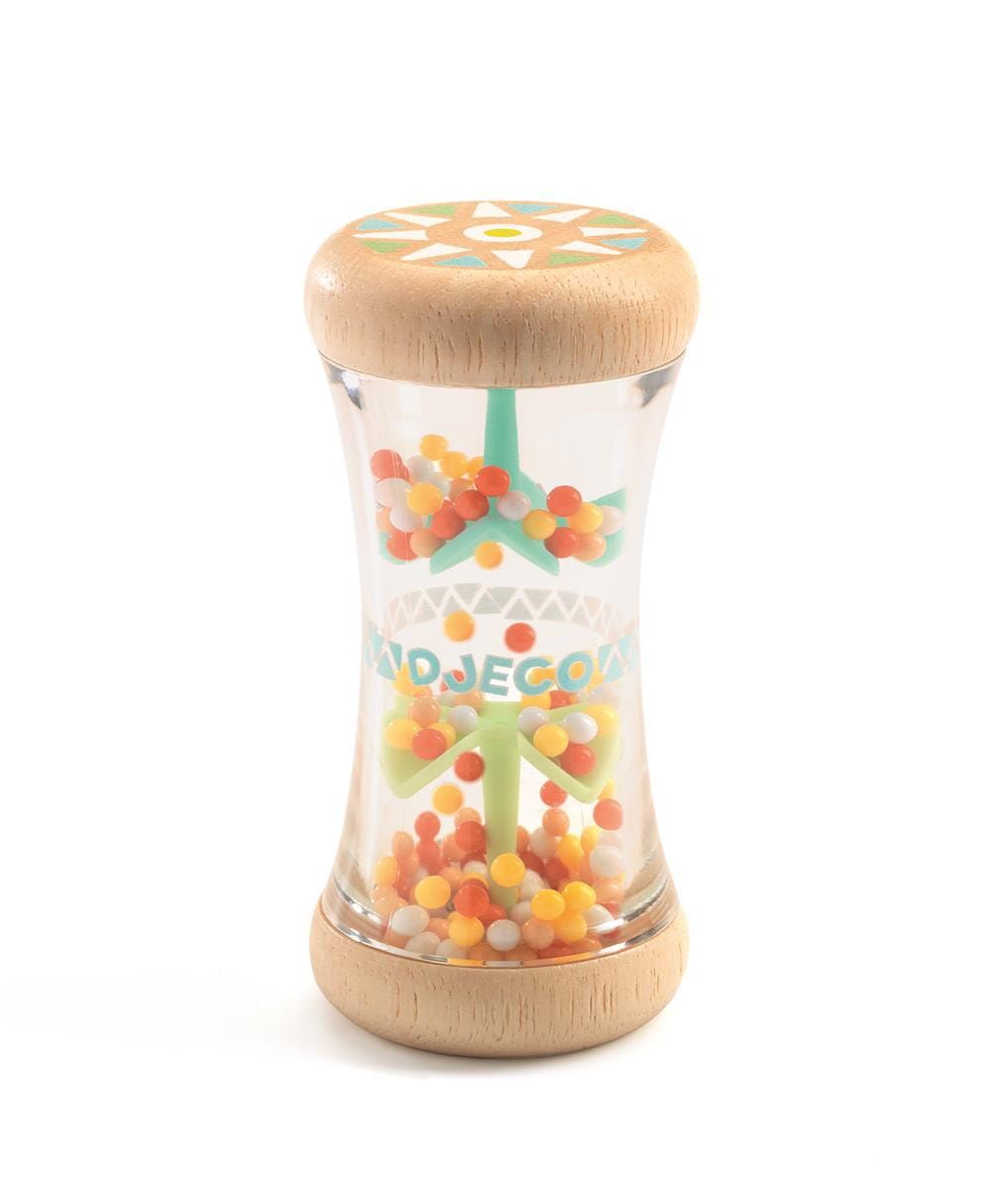 Grzechotka Baby Plui w pełni zaabsorbuje uwagę Twojego dziecka. Zabawka składa się z drewnianych podstawek ozdobionych ślicznym wzorem oraz plastikowego pojemniczka z małymi koralikami, które przesypują się podczas potrząsania. Piękne kolory i atrakcyjny design sprawią, że grzechotka natychmiast podbije serduszko smyka.