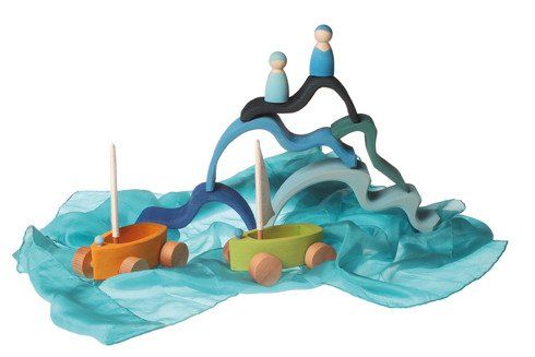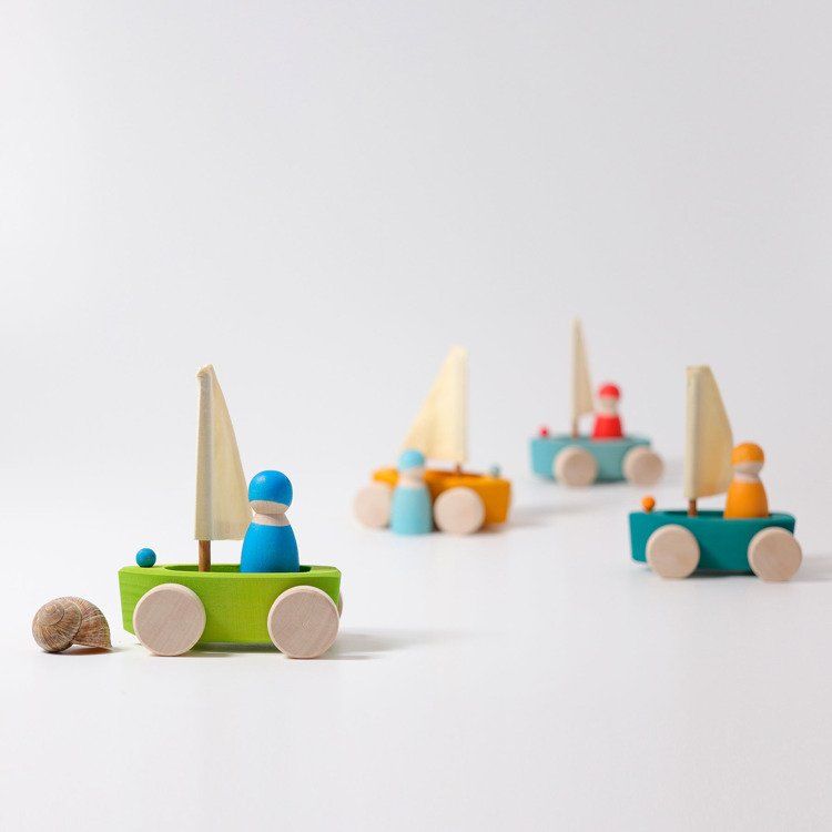 Pora nastawić żagiel i przywitać się z przygodą! Śliczne, kolorowe jachty wraz z załogą żeglarską zostały wykonane z drewna lipowego wykończonego nietoksycznymi bejcami na bazie wody. Twój maluszek może teraz organizować regaty żeglarskie z rówieśnikami. W połączeniu z drewnianymi klockami Grimm’s, imitującymi fale, Twoja pociecha może stworzyć piękną opowieść o czterech żeglarzach, którzy pewnego dnia wyruszyli na pełne morze!