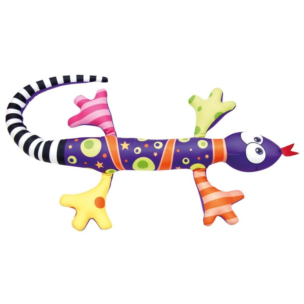 Wygląd jaszczurki jest bardzo ciekawy i wesoły – każda łapka ma inny kolor. Celowo zastosowano czarno-biały wzór na ogonie – kontrastowe barwy są dobrze widziane przez dzieci. Odstające elementy, takie jak łapki i ogon umożliwią maluszkowi ćwiczenie chwytania.
