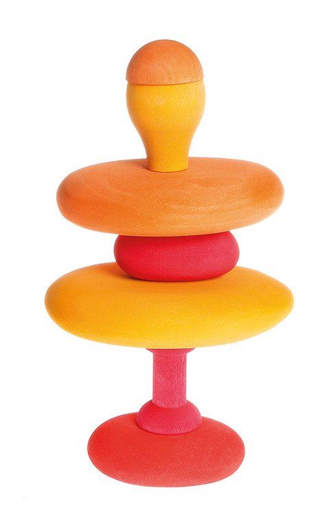 Kamyczki w odcieniach czerwonego koloru zostały wykonane z drewna lipowego i wykończone nietoksycznymi bejcami na bazie wody. Twój maluszek może układać kamyczki jeden na drugim lub wykorzystać je do innych zabaw. Zabawka posiada naturalny zapach drewna, jest także przyjemna w dotyku. W połączeniu z innymi produktami marki Grimm’s Twoje dziecko może tworzyć niesamowite, kolorowe konstrukcje!