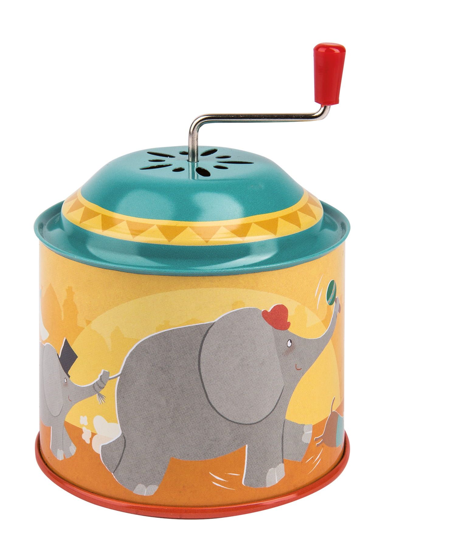 Metalowa katarynka w stylu retro – podczas kręcenia korbką wygrywa melodyjkę.