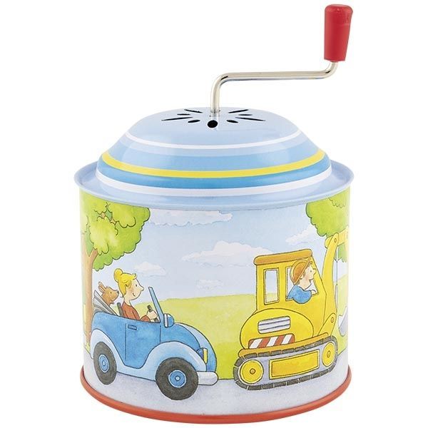 Katarynka z koparką i autkiem Goki to klasyczna zabawka w nowej, uroczej odsłonie. Kolorystyka i wzór z pewnością spodoba się przede wszystkim chłopcom – na katarynce widnieją pojazdy – samochód i koparka.