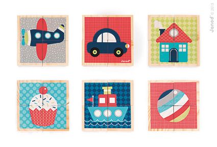 Klocki wyprodukowała francuska marka JANOD, której zabawki cechują się oryginalnym designem. Dzięki temu dziecko może bez przeszkód uwolnić wyobraźnię podczas zabawy. Drewniane puzzle 6 w 1 zapakowane są w estetyczne opakowanie, więc idealnie nadają się na prezent.